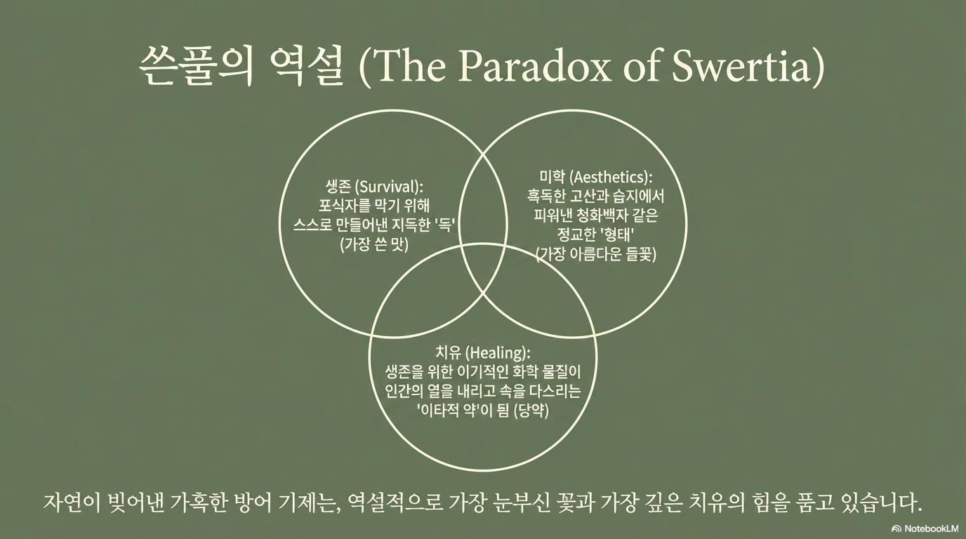 네귀쓴풀의 생약명은 ‘당약B’(當藥 B)입니다. 이는 전통 생약 명명 규칙에 부합하여