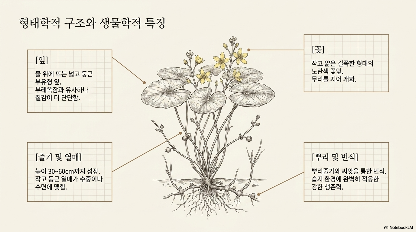 노랑어리연꽃은 수생식물로서, 한의학에서는 행채(行菜)라는 생약명으로 불립니다.