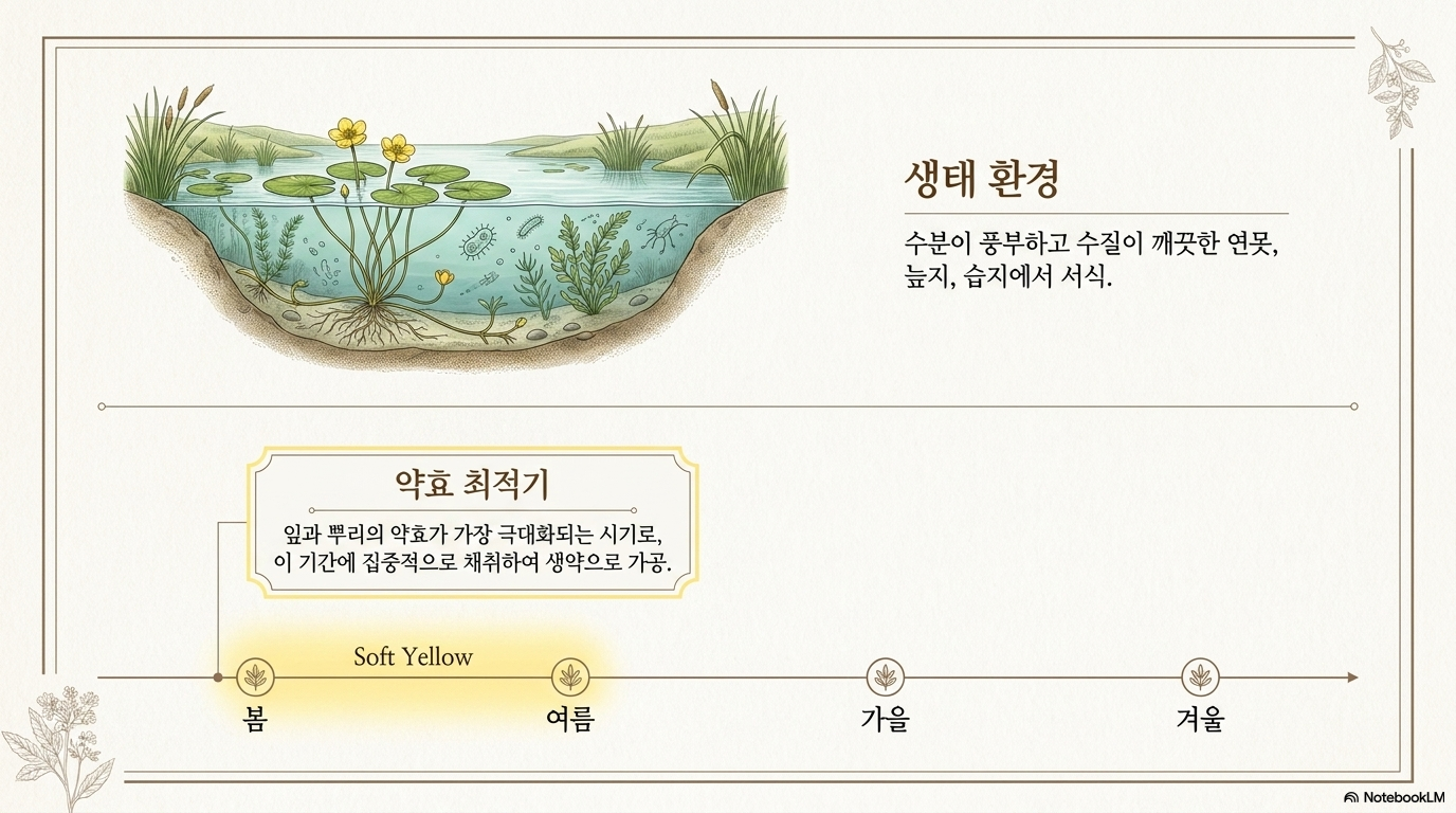 주로 습지나 연못 등에서 자라며, 전통적으로 이뇨와 소종 작용을 위해 사용되어 왔습