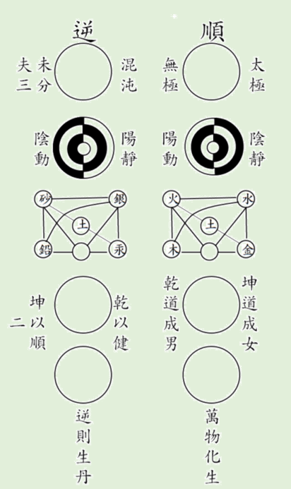 疊足端坐 垂簾塞兌 收拾萬事之紛擾 歸於一無之太極者 仙道也 逆推工夫 契